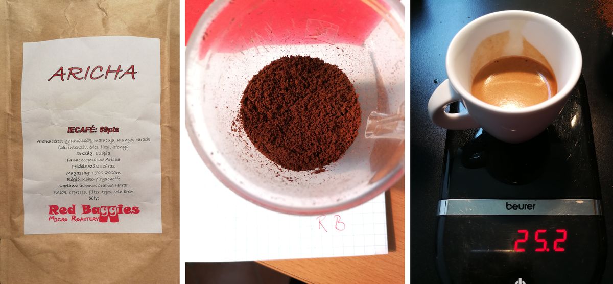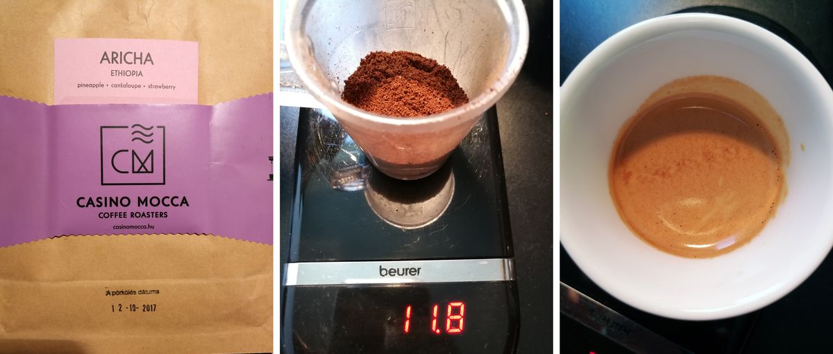 A teszthez BWT vizet használtunk, a Gaggia Classic 92 és 94 C-ra volt állítva, az őrlemény súlya 11,8 gr volt a szimpla adaghoz.